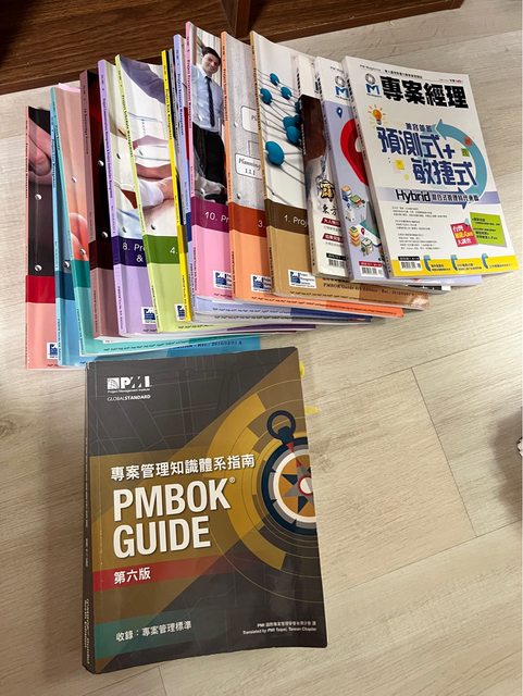 物品說明:有一系列PMP的課程講義PMbok, 及各式書籍