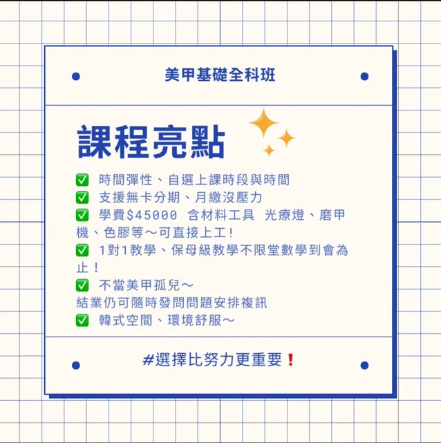 4、美甲基礎課程1v1 訂價59000、版友限定優惠$45000含材料