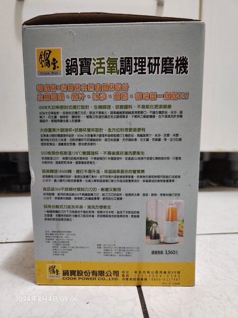 [交易] 物品A/價格 全新鍋寶 活氧調理研磨機$800 物品A實照