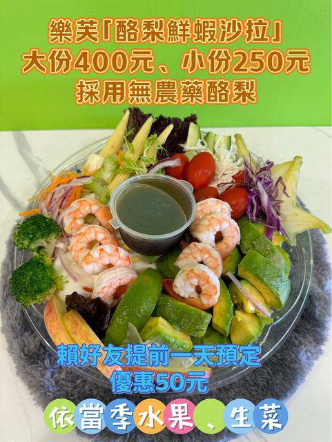 酪梨鮮蝦沙拉大份400元、小份250元