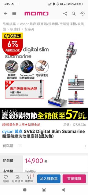 DYSON SV52 Digital Slim Submarine 輕量無線洗地吸塵器(2024)