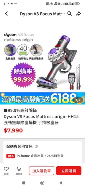 Dyson V8™ Focus Mattress Origin無線手持吸塵器.