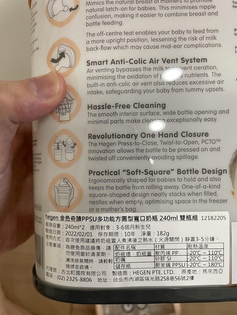 物品名稱:hegen金色奇蹟 ppsu 奶瓶/奶嘴