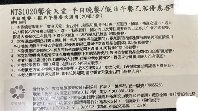 標題[交易] 夏慕尼 饗食天堂 平日晚餐/假日午餐餐券