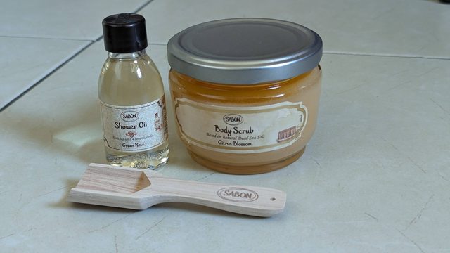 Sabon 橙花身體小磨砂膏+迷你綠玫瑰沐浴油(效期至2025/8月&11月)/800元