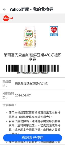 物品說明:萊爾富兌換