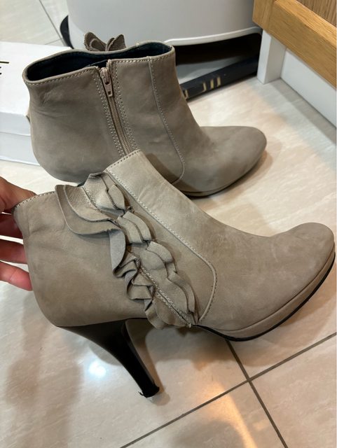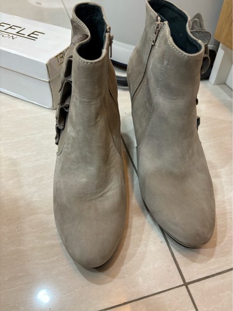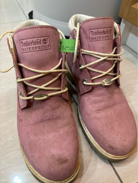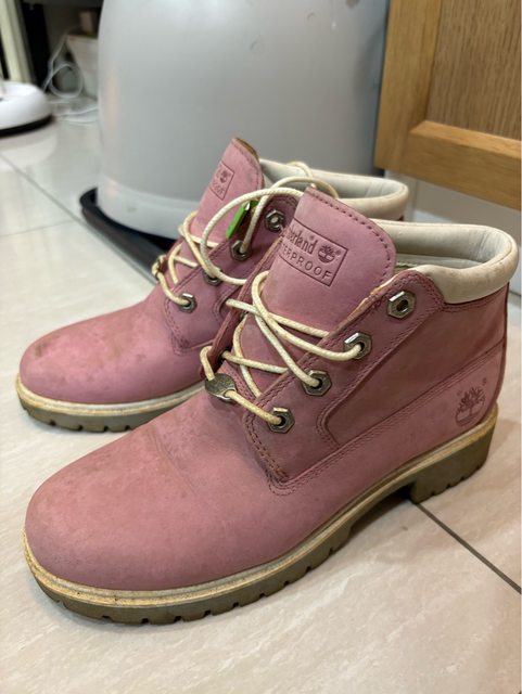 4. Timberland 粉中統靴 US6.5 麂皮部分受潮沾黏,需自行清理(送出