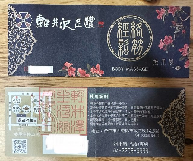 標題[交易] 西屯輕井沢按摩卷 全身按摩*2張