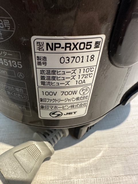 交易地點:南屯捷運站附近 廠牌/型號 象印 ZOJIRUSI NP-RX05 來源: 親友日本購入,購入時間忘了,少用,倉庫斷捨離,最近有拿出來可以正常使用 交易金額:$2800