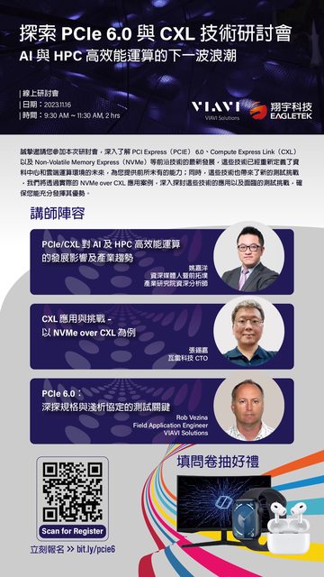 翔宇科技股份有限公司和美商Viavi Solutions非常榮幸地邀請站上各位年薪三百萬的大大們參加我們即將舉辦的線上研討會,主題為《探索PCIe 6.0和CXL技術:AI和HPC高性能運算的下一波浪潮》。這次線上活動將深入探討PCIe 6.0和CXL對AI/HPC的影響,以及這些新技術帶來的挑戰和機遇。
