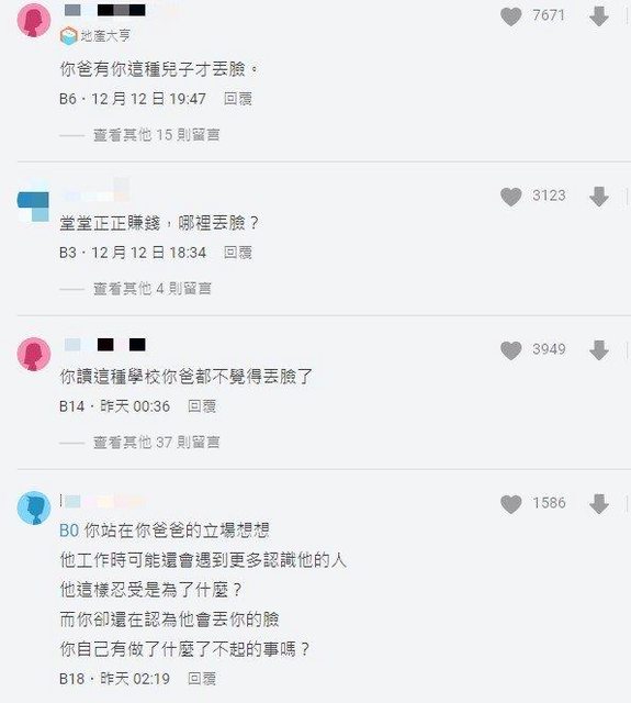 噓 air0909 : 你爸都沒有因為你讀爛學校而覺得丟臉了 小孩是在靠 12/15 09:58