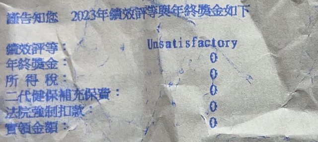 → rkilo : 要給,而且績效不合格的為什麼要給你獎金? 02/09 15:30