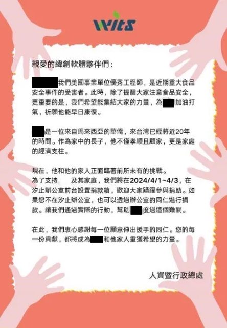 推 wtfconk : 公司自己不先盡力協助只顧著叫員工捐?先問交情好了, 04/01 16:52