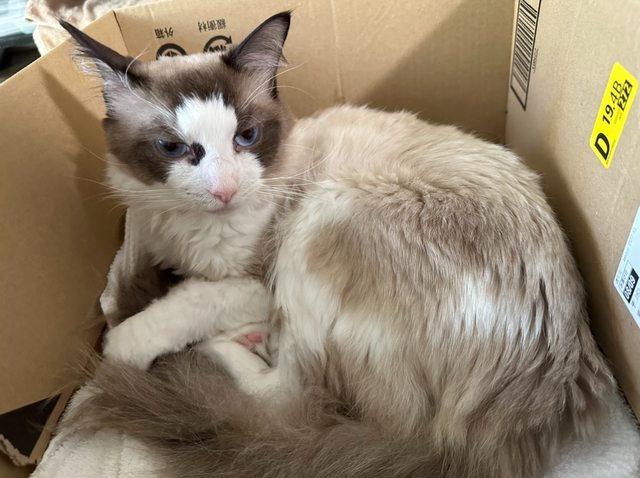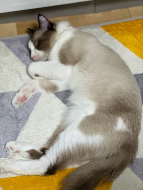 送養人說是布偶但毛好像沒有網路圖那麼多,不知道是不是混血,可愛又乖,只能說品種