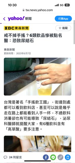 推 pttnowash : 一天一杯會結石太恐怖 還好我1天3杯 101.10.47.39 11/04 07:27