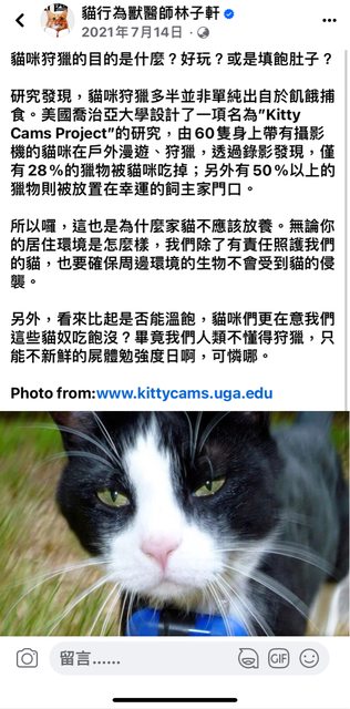 → pttnowash : 澳洲政府用政府之力屠殺幾百萬隻貓49.216.90.62 11/17 20:28