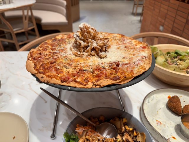 直接把沙拉捲在Pizza裡,變成下一道新菜: