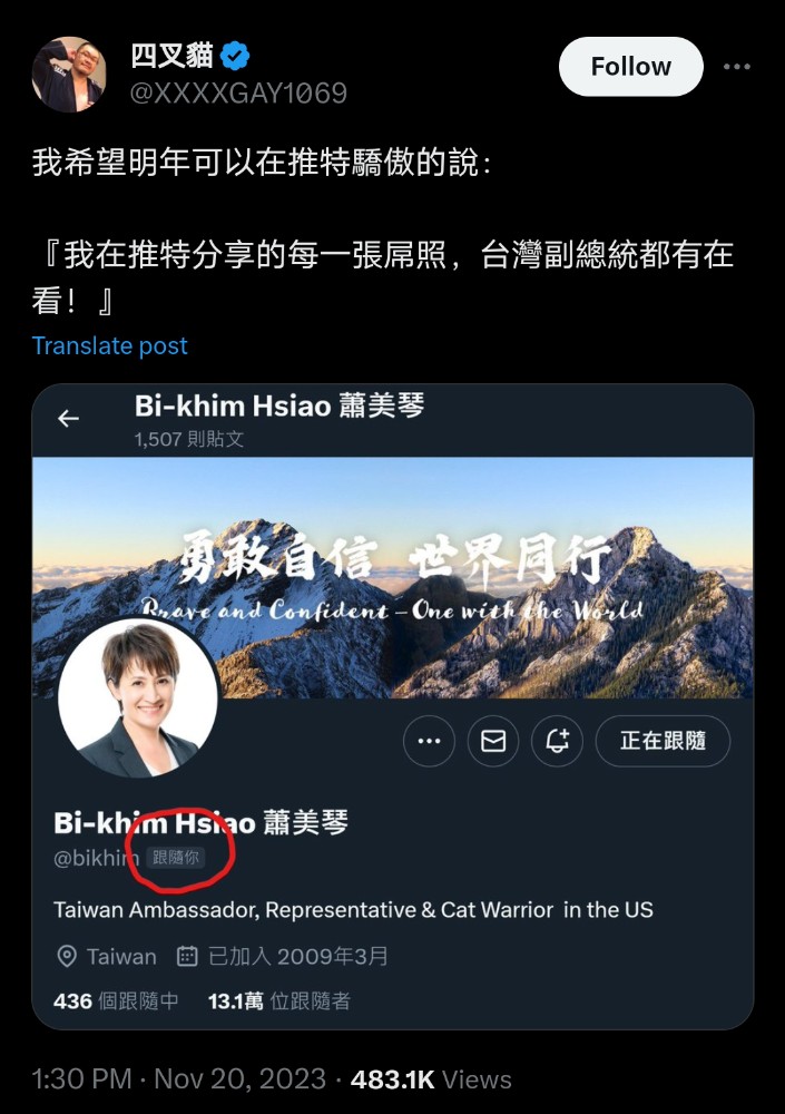 → BlueBird5566: 叫副總統看他屌照的四叉貓呢223.140.252.236 11/23 10:55