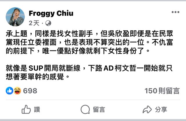 → kattte : 他是綠色的,民進黨會假裝沒看到啦114.137.225.185 11/27 08:49