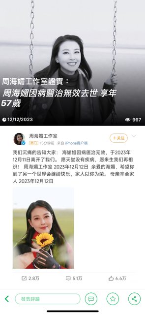 → etiennechiu : 樓上,是因病去世180.217.44.0 12/12 22:13