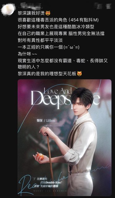 推 miyuika : 我的對象跟乙女遊戲喜歡的角色完全 59.124.26.193 12/14 14:29