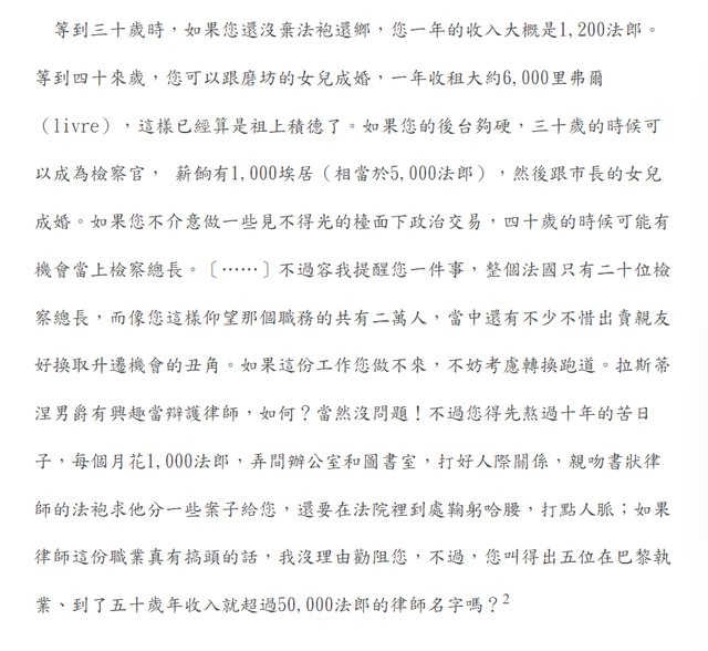 : 大意是就算拉斯蒂涅再會讀書再優秀,他頂多只能成為中產階級的一份子,一
