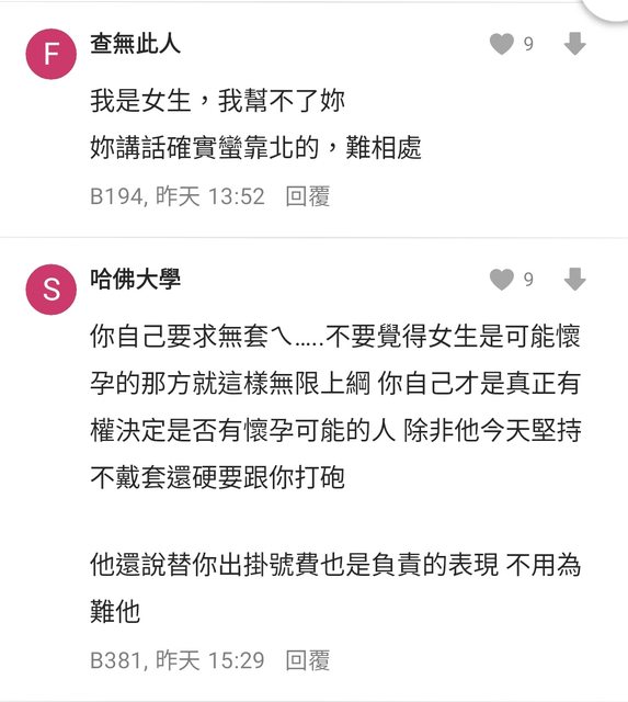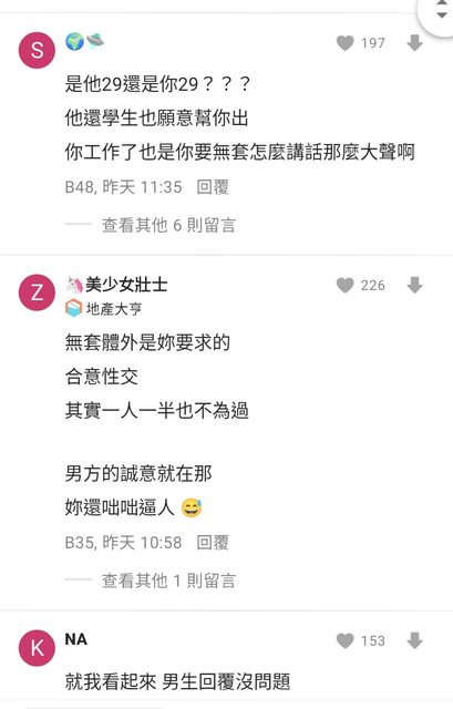 例如有篇是大學男vs 30歲阿姨,阿姨發文說她主動要求男生內射,男生事後說”我幫你