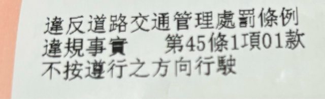 標題[問題] 不按遵行之方向行駛 罰款