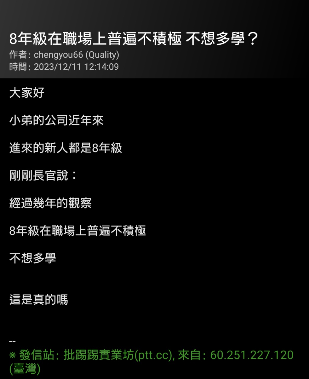 → pastevil : 別這樣,7年級的也一堆躺平 111.71.69.47 06/18 17:01
