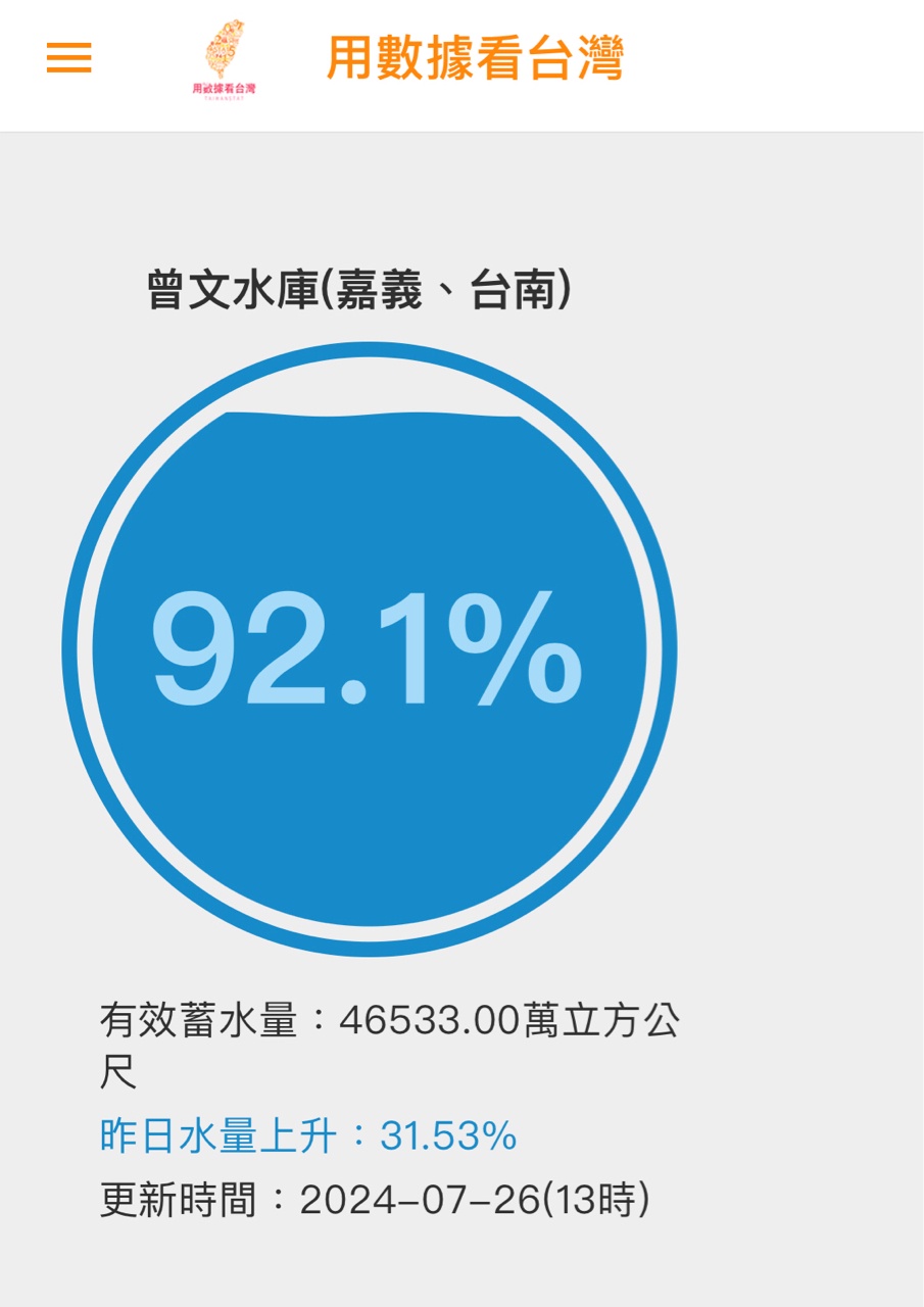 推 tony1768 : 曾文從23日到26日花3天加40幾% 223.139.95.48 07/26 15:56
