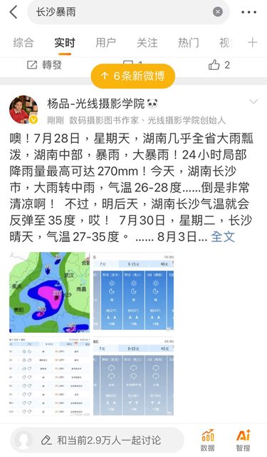 在內陸的湖南」。還有人說,,「雨從昨天下到現在還沒停,居然還要持續到29號。今天