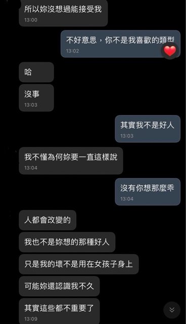 推 lisivo : 主管那個說法其實不是告白,是騙X 118.168.200.64 08/24 18:04