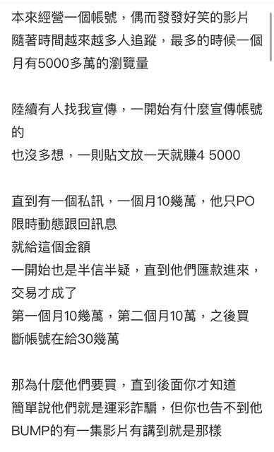 是一個粉絲數70,000 月點閱數可能上千萬的粉專