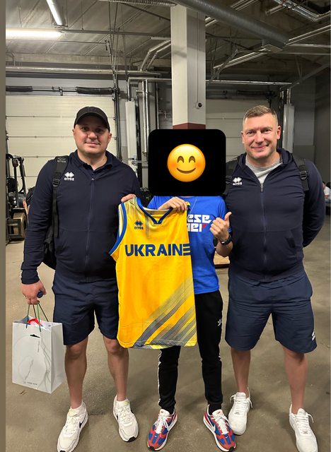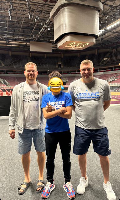 左邊是烏克蘭男籃新總教練 和我互相交換禮物球衣 鋼鐵人的烏克蘭牛吉祥物 小孩特愛 https://i.imgur.com/5DiKtDp.jpg
