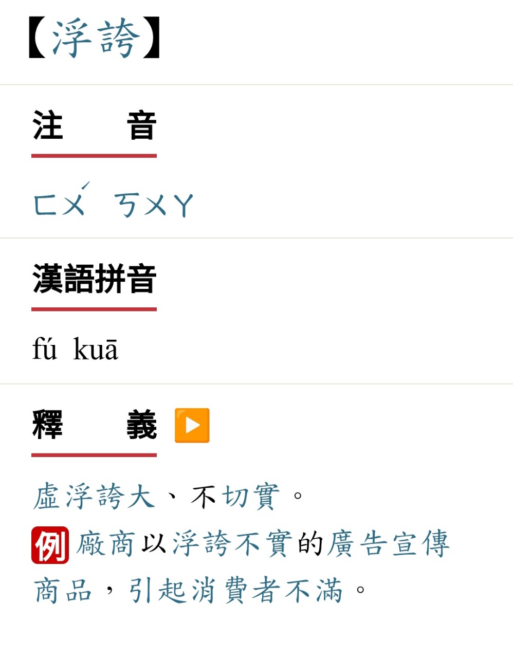 推 linyyggtt : 原來浮誇還有虛浮誇張的意思 我還以為只有誇張 那 03/09 23:12