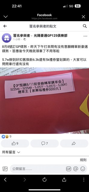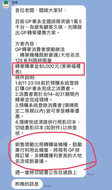 → jojo396: 禮券是光陽自掏腰包加碼,我想不太可能 1.200.7.7 08/18 00:43