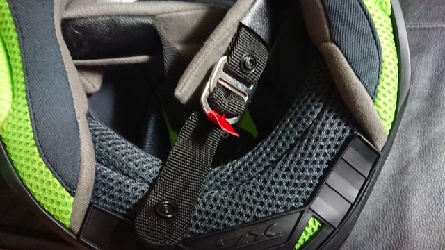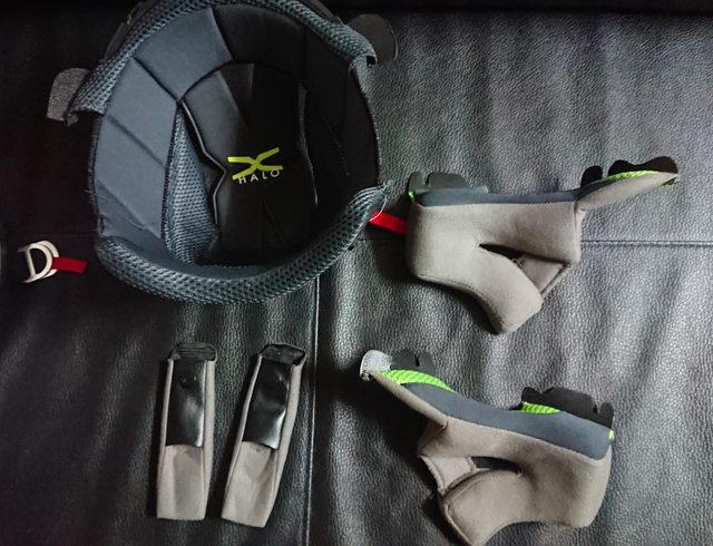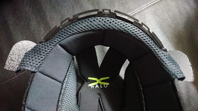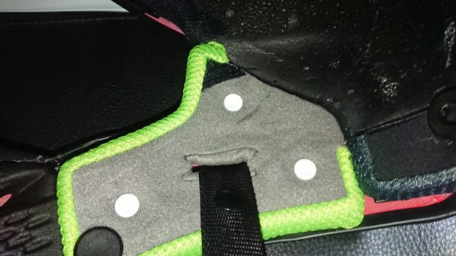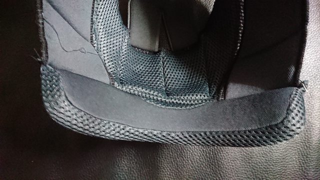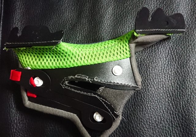 頭頂內襯則是前面為塑膠卡榫式固定,後方為兩扣點固定。