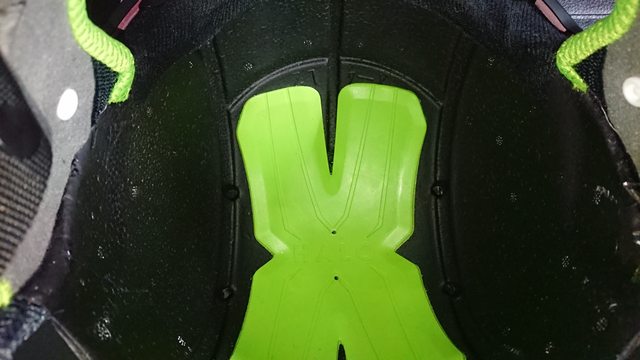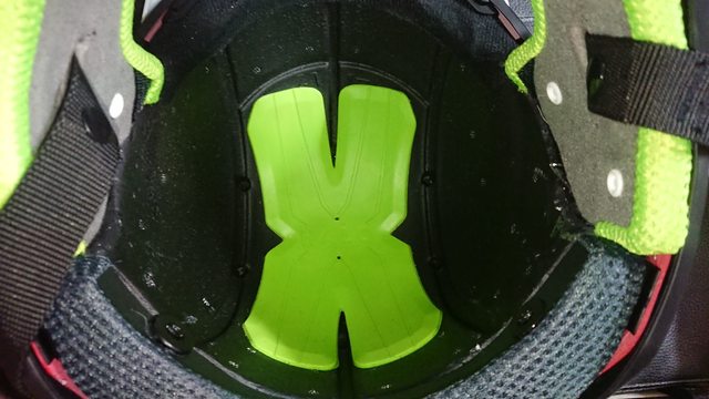 內部 EPS, 中間綠色那塊就是主打的減震技術 X-HALO 的本體。 據官方說法,這塊區域透過該技術能增加 12% 的衝擊保護。