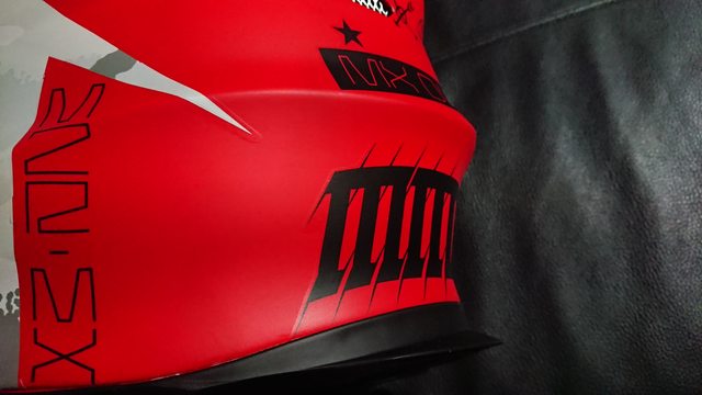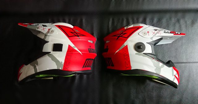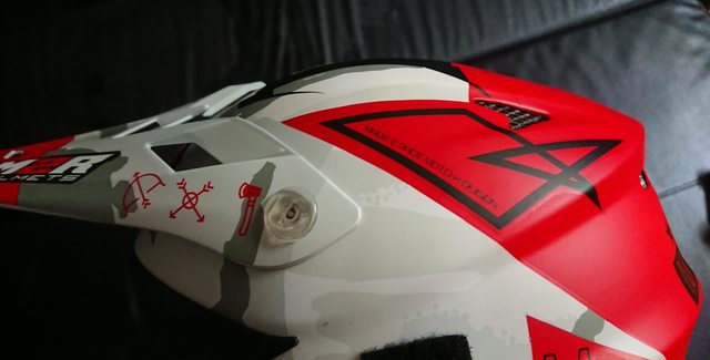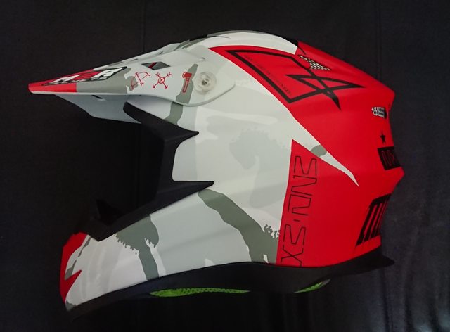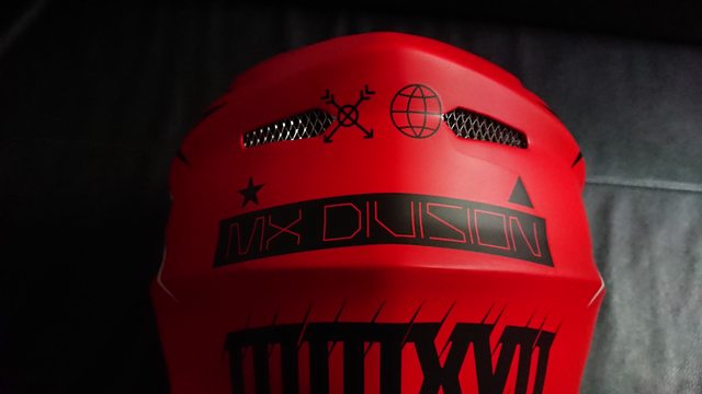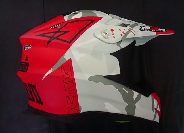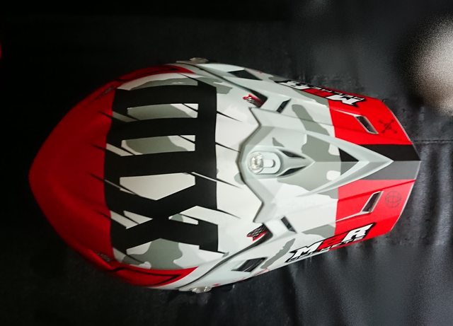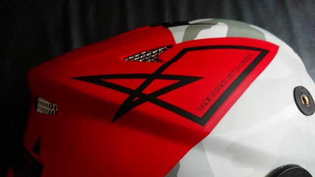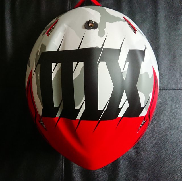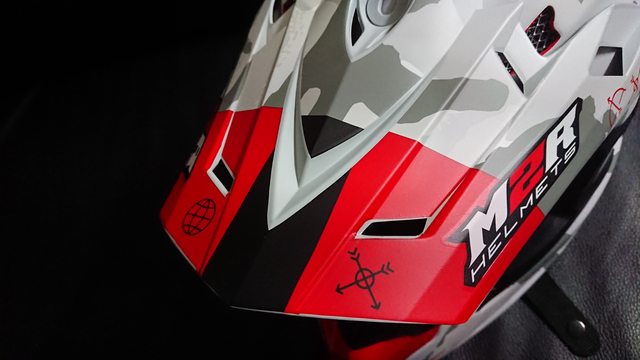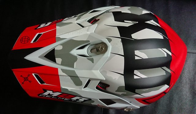 拆掉帽簷,讓帽體整個裸露出來。 上方有個大大的 MX(MotoCross) 的字樣。