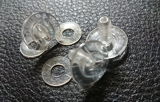 而帽簷螺絲,則是塑膠螺絲, 左中右的規格都相同,還各帶一個塑膠墊片。