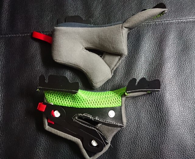 頰襯配有 ESRS 快拆設計,拉下紅布可直接拆下。