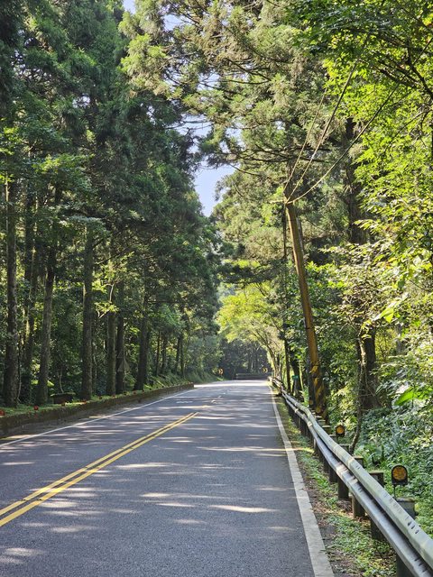 每次騎車經過北宜的時候最愛這一段路,有兩側挺立的綠林,有頭頂的藍天白雲;道