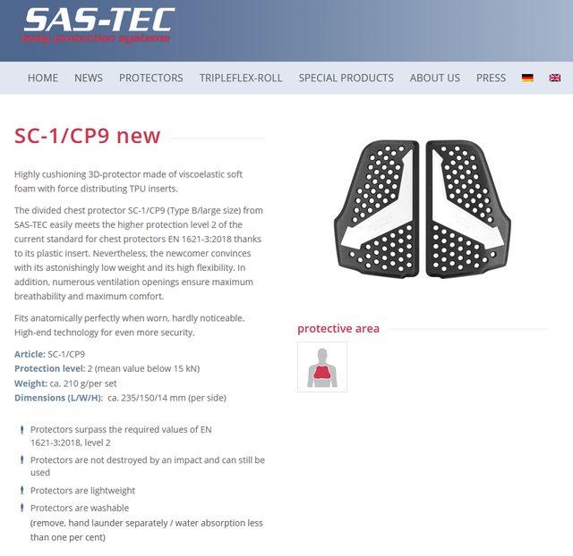 直到後來,才接觸到 SAS-TEC 這兩組護胸。