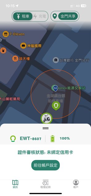 租還車、啟動機車、開啟油箱都需要使用手機App操控