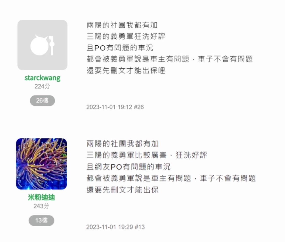 → james725twtw: 現在反而網軍在三陽問題文洗站內信 1.200.81.80 11/02 12:36