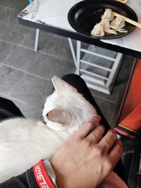 哎,會自己跳上來給嚕的貓貓真棒,老闆說白色的這隻叫咪咪,自從有次餵了牛奶後就賴