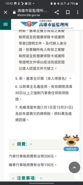 : 「6. 以新車主名義投保,有效期限須滿 30日以上之強制汽車責任保險保險證。」