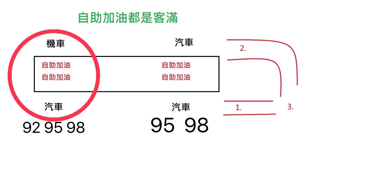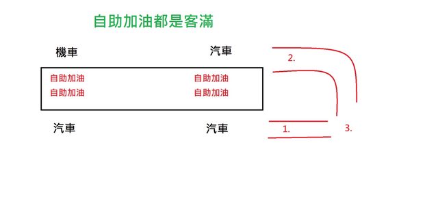 推 ALF991: 機車加油孔在左側,所以會排2號加油島, 36.226.0.106 01/06 02:43