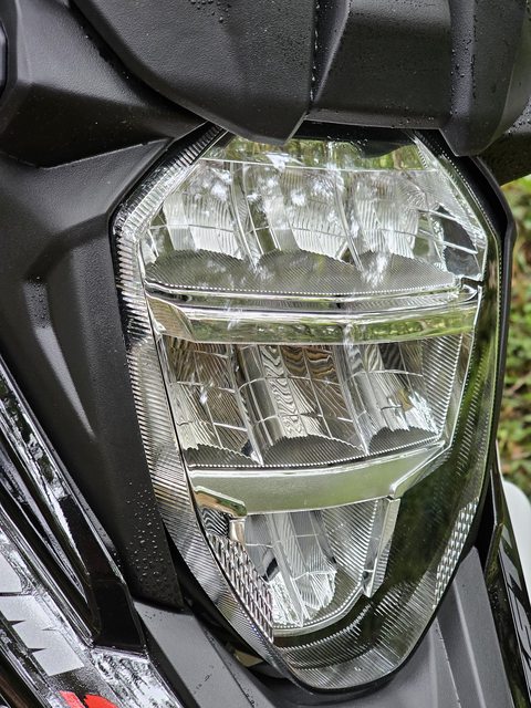 原廠的八角三層式廣角LED頭燈,由於騎乘的時間是白天到傍晚,因此尚不確定這組