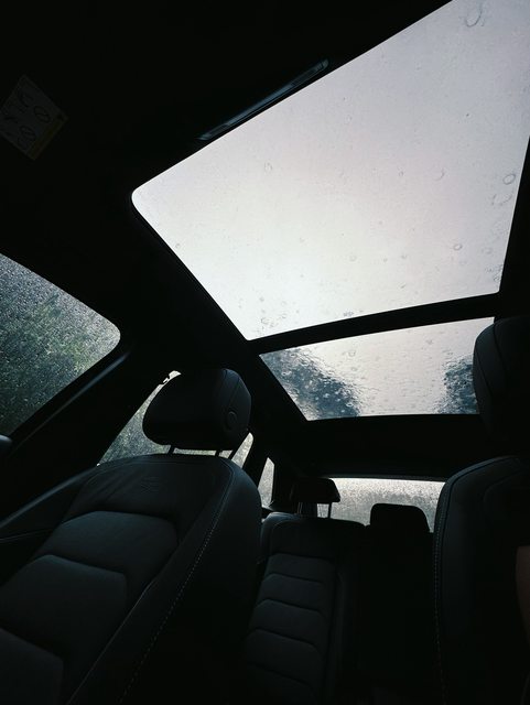 他來接我的時候我刻意先坐在後座,Tiguan開了天窗後空間我覺得很大